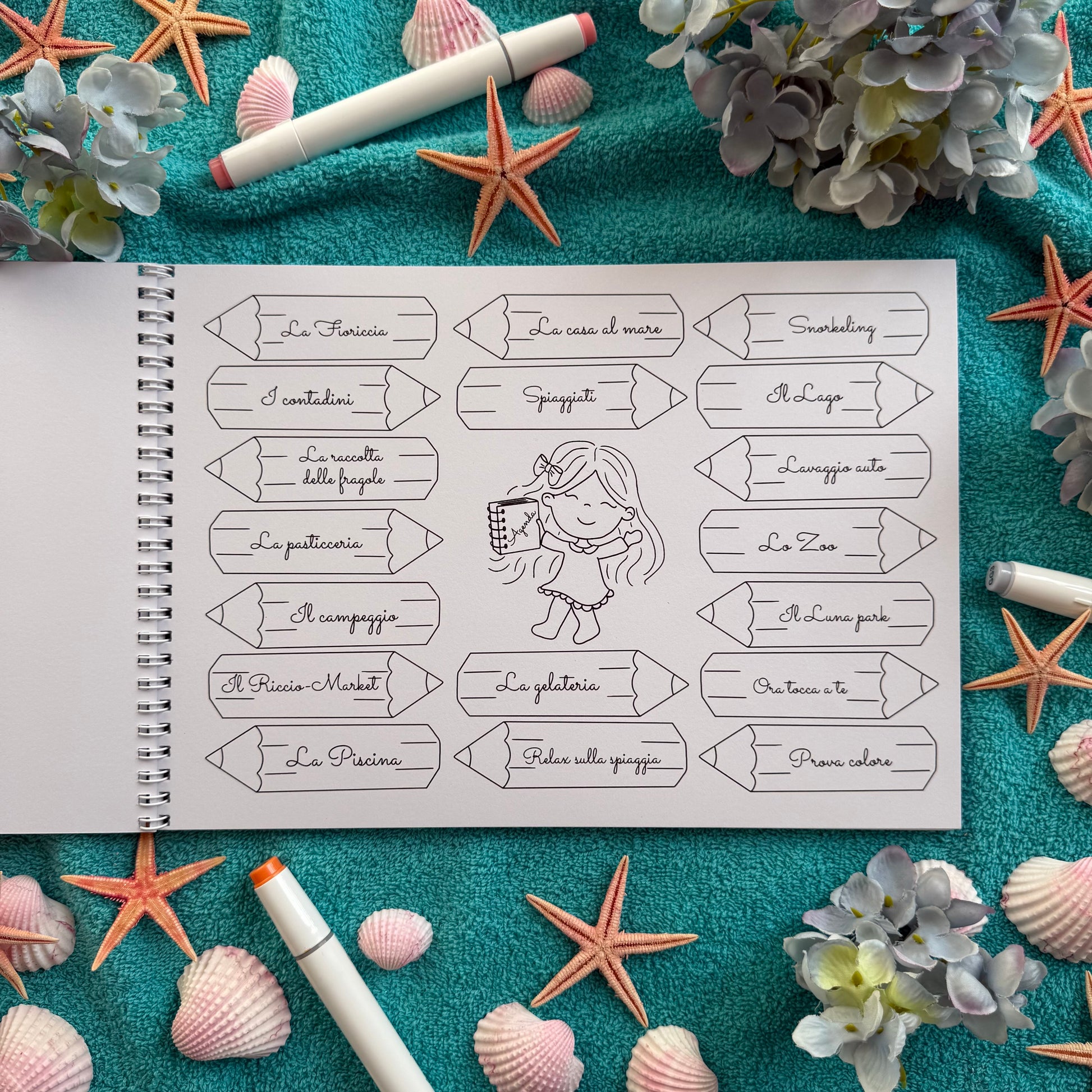 ✏️Un’agenda speciale, con matite illustrate, ognuna con il titolo di una tavola: potrai colorare la matita corrispondente ogni volta che completi un disegno!
